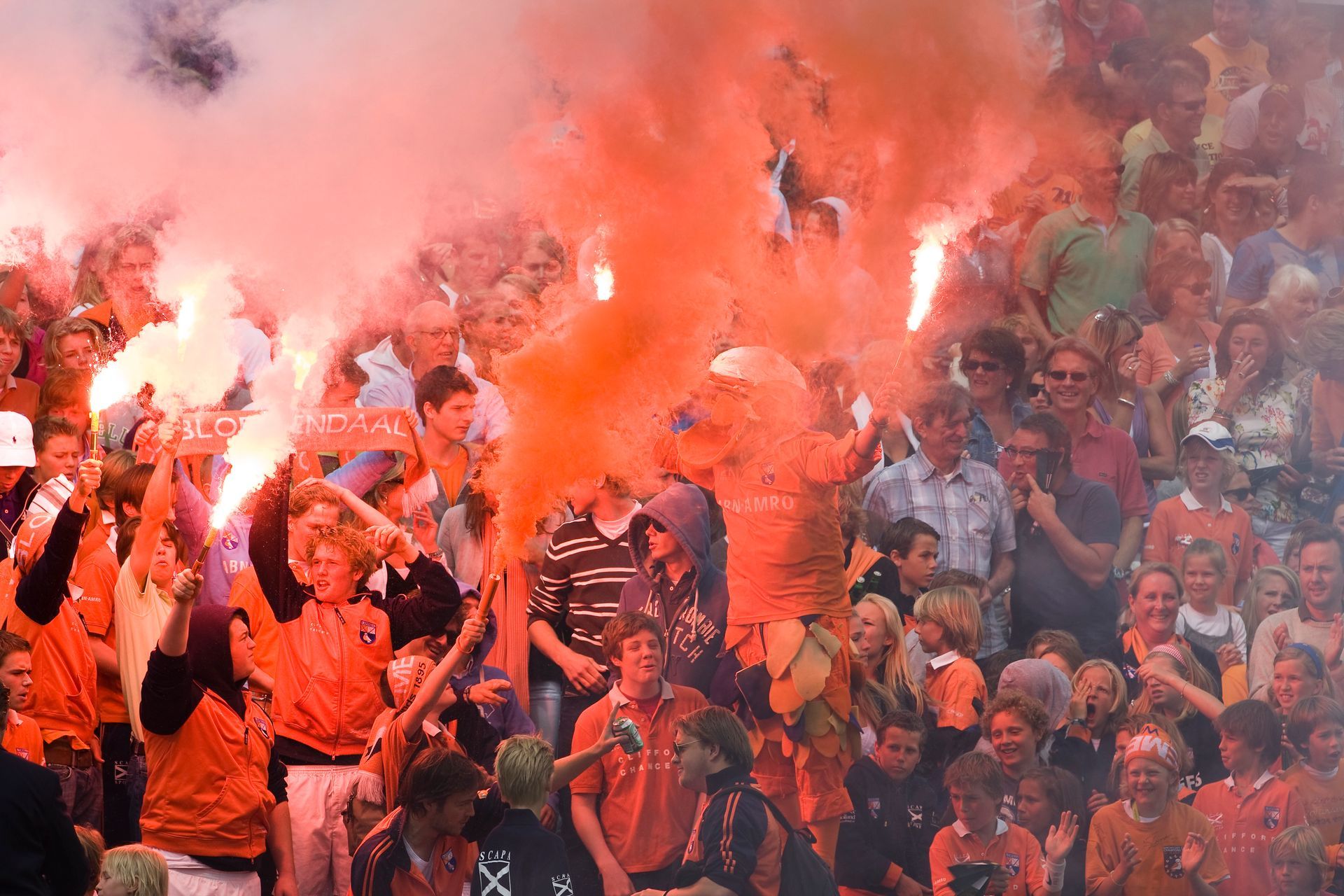 De Bloemigans zijn echt uniek voor het hockey, niet alleen in Nederland, maar waar ook ter wereld. Een internationale collega moet ik het altijd even uitleggen: wie zijn die gasten!? Vooral het vuurwerk is natuurlijk prachtig. Dat wordt heel intensief besproken voor de wedstrijd met de bondsgedelegeerde. Hoe staat de wind? Tijdens de halve finales van het seizoen 2009-2010 hadden ook de fans van Laren vuurwerk meegenomen. De eerste tien minuten zag je door de rook geen hand voor ogen; toen hebben we met de spelers overlegd of we de wedstrijd stil moesten leggen. Dat maakt een wedstrijd op Bloemendaal toch anders dan een potje op, pak ‘m beet, HGC.”