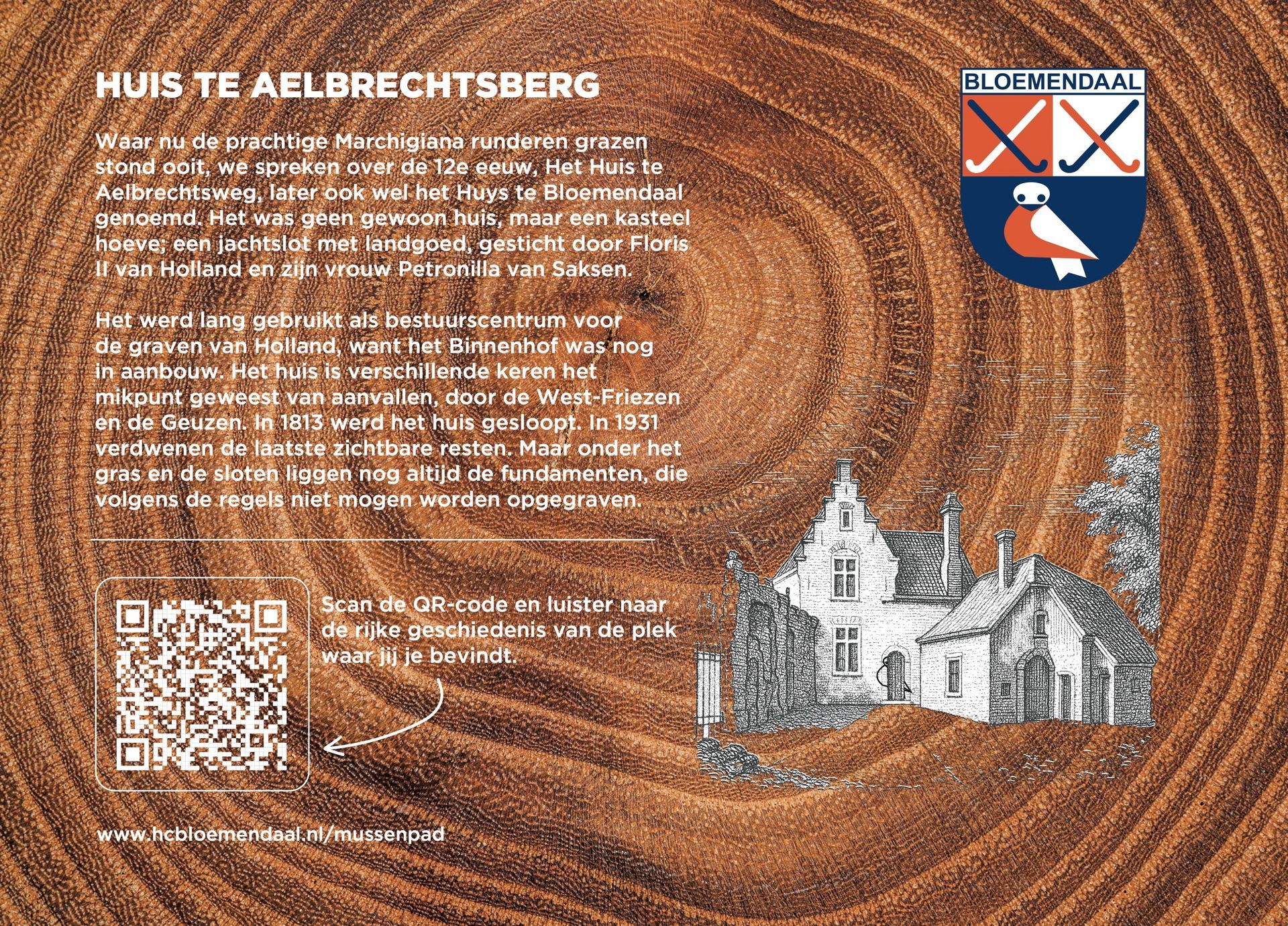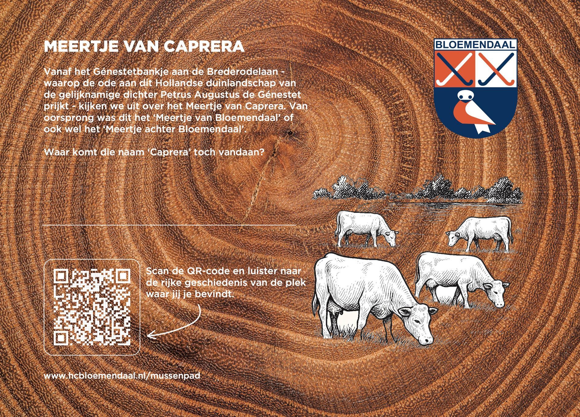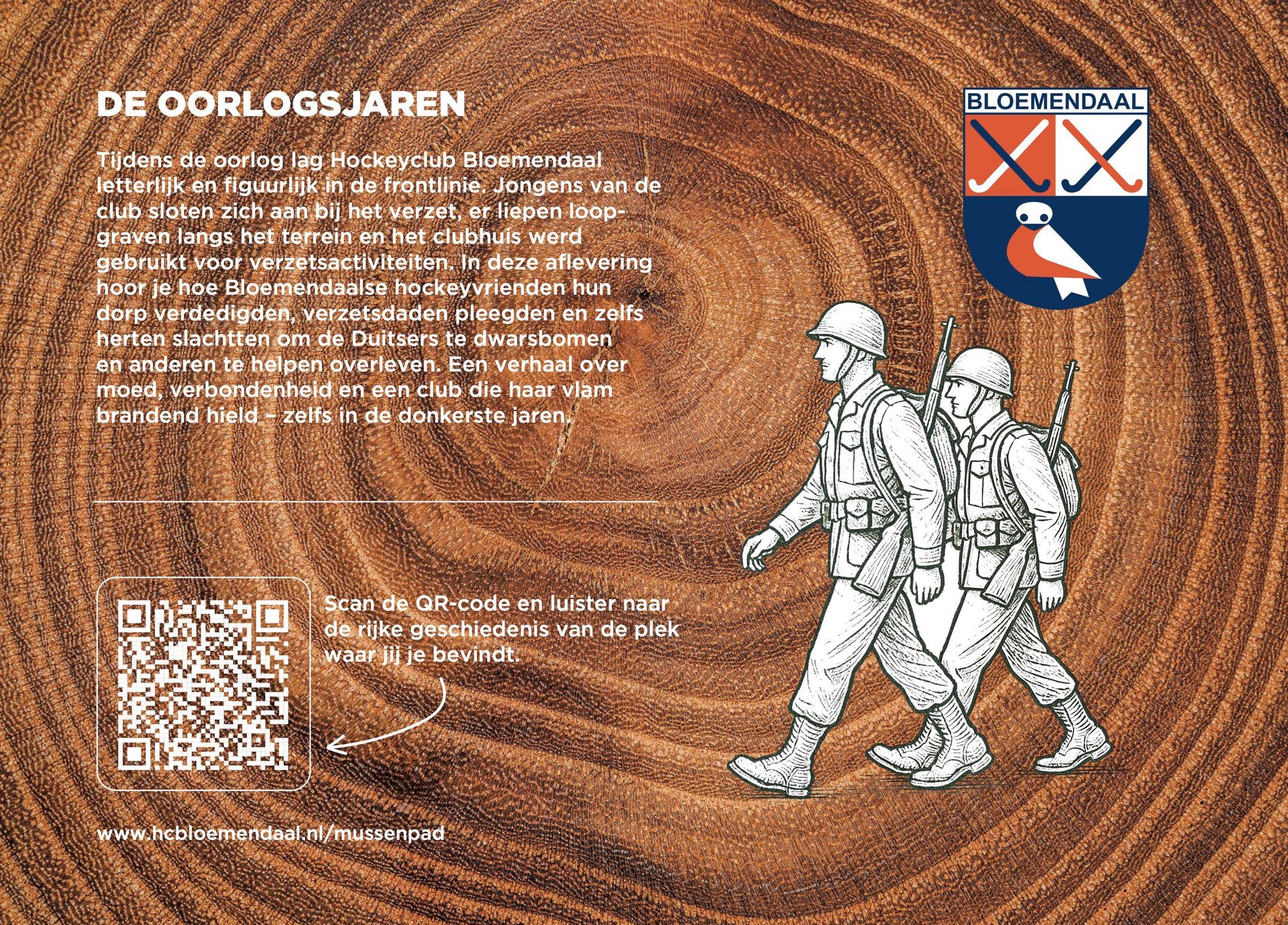 De bekende Nederlandse, maar natuurlijk ook Bloemendaalse, acteur én vrijwilliger op de club, Hidde Maas, alsmede prominente Bloemendaal hockeyers Cees-Jan Diepeveen, Floris-Jan Bovelander, Teun de Nooijer, Wouter Jolie, Jorrit Croon en Jaap Stockmann stonden garant voor het inspreken van de tour. Zij nemen de wandelaar / luisteraar mee in het heden en verleden van Hockeyclub Bloemendaal. Op het Mussenpad kom je van alles te weten over de omgeving, hoor je spannende verhalen over het Bloemendaals verzet in de Tweede Wereldoorlog en worden al onze helden en heldinnen geëerd, hockeyend en niet (meer) hockeyend.