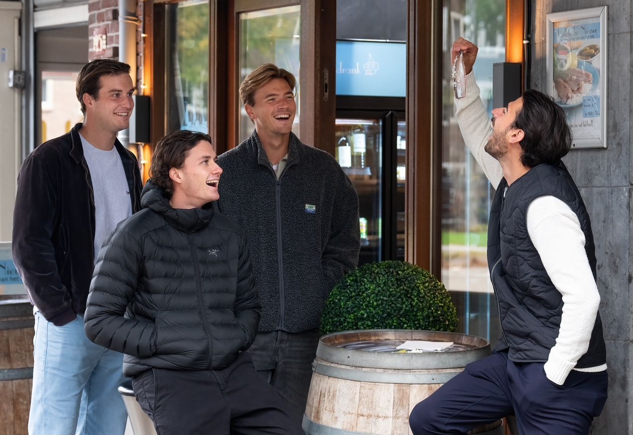 De deur is niet te missen. Een huisnummer getapet met hockeytape verraadt dat we goed zitten. Binnen geen anonieme studentenflat, maar het onderkomen van wat zomaar een nieuwe boyband lijkt te zijn. Tenminste, zo leek het toen we op een vrijdagochtend met twee fotografen, camera’s en lampen voor de deur stonden en vier good looking gasten in pose zetten. Omstanders bleven nieuwsgierig staan kijken. ‘Ja hoor, we staan binnenkort in de Ziggo Dome,’ roept Jorrit Croon met een brede grijns.