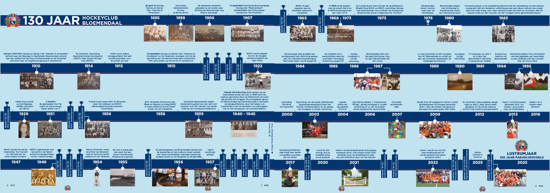 Om met de vergissingen te beginnen: Het was Heren 1 van de op 15 september 1907 opgerichte Bloemendaalse Hockeyclub ‘Bloemendaal’ (BHC) dat tussen 1919 (en niet 1918) en 1923 vijfmaal landskampioen werd, en niet MHC. Vervolgens werd Heren 1 van Bloemendaal-Musschen-Haarlem-Combinatie (BMHC) - de officiële naam van 17 juni 1936 tot 18 juni 1973 - landskampioen in het seizoen 1937-1938 en niet in het seizoen 1935-1936.