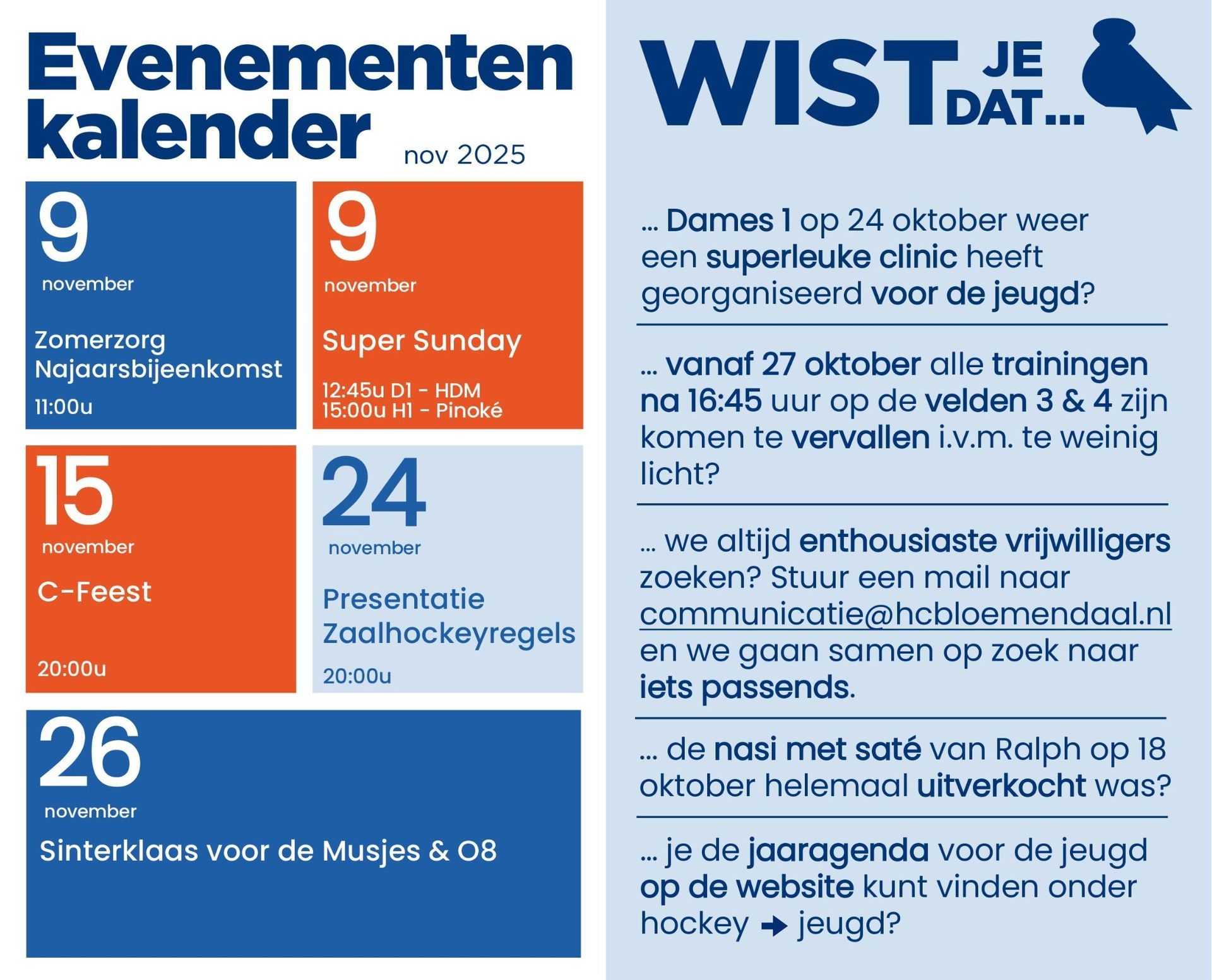 En om in de feestelijk sferen te blijven; 14 februari is het feestelijke hoogtepunt van ons lustrum! Dit jaar doen we het nét even anders. Geen dames- en herendiner, geen pubquiz – maar een waanzinnig lustrumfeest voor alle seniorleden, hun partners én ouders van onze jeugdleden. Mis het dus niet! Er zijn al heel veel kaarten verkocht dus wacht niet te lang om met je team en/of vrienden/vriendinnen en groupe kaarten te bestellen. Het belooft 14 februari echt een onvergetelijke en gezellige avond te worden met een afgeladen Locael in Haarlem als locatie, super DJ’s en spectaculaire verrassingen. Tickets zijn verkrijgbaar via