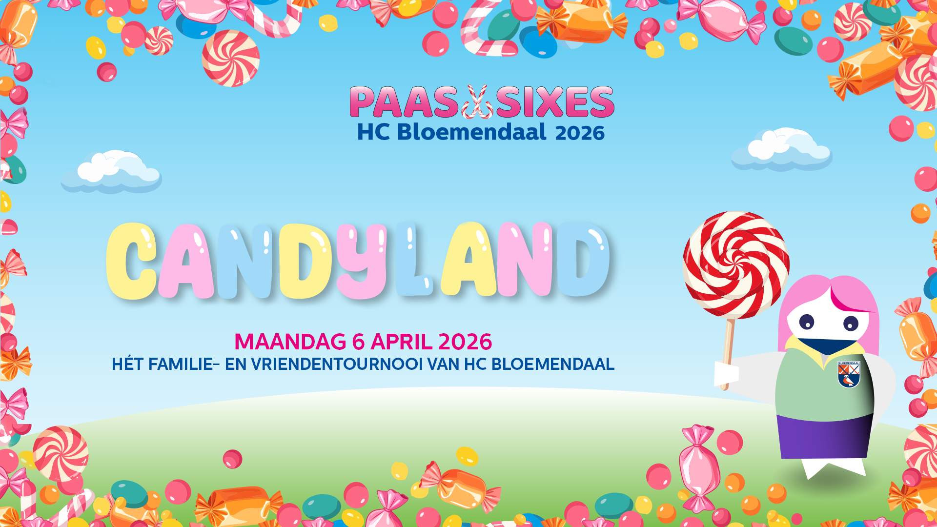 Candyland! Verkleed je met je team als zuurstok, toffee of lolly en ding mee naar de prijs voor de leukste teamoutfit. Hoe opvallender, hoe origineler, hoe beter. Nieuw dit jaar is de mascottewedstrijd, dus verzin, ontwerp en knutsel de allergaafste mascotte voor jullie team en zorg dat je deze prijs in de wacht sleept.